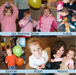 We had a mass of people there… mostly family (including 4 little girl cousins) and a few of P’s little friends: Lukas Howard, Donnie Huff and Reyna Collins. So, even though the guest list seemed contained, there were still close to 40 people there! Yikes.