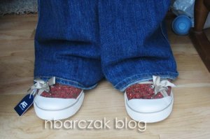 The second pair are more like tennis shoes. They’re here to stay as they were only $9 and I wore them to the Hands On Museum today. Are these dorky? (oh, and you get a glamourous shot of my belly with these shoes! I wanted to show how they looked with jeans- the up close pics made them look queer). Eww.. my jeans look so icky with flats.