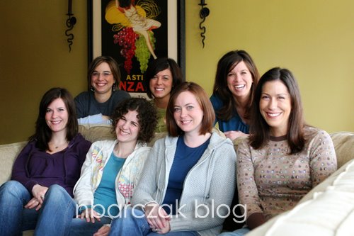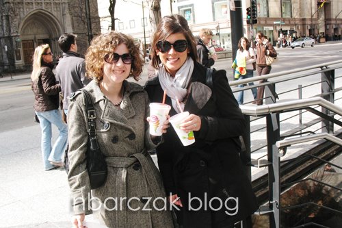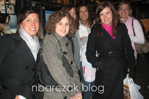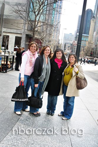 After dinner we hopped on the bus to take us down the Mag Mile to the train station. The train ride home was hilarious. The 7 of us were in the back of one of the cars, and there was one guy sitting in front of LeeAnn and I and across from Leslie and Kim. Les nonchalantly asked me about who I was going to have in the delivery room and from there our conversation bounced around with everyone’s stories about who they had in the delivery room (what do you expect… bunch of moms… our conversation always turns to birth stories HAHA!). You could see the guy’s face in the reflection on the window and he was clearly thinking “OMG get me OUT of here!” Then we started getting silly… I mentioned that my hands smelled like my dinner (Grilled Chicken Sandwich and Onion Rings) and then we began joking about how Maria always swears that she stinks like Subway after she eats there and we all were cracking up and coming up with silly ideas like “Ok, once we get off the train we’re going to find a Subway and we’ll have Maria close her eyes, we’ll send someone in for 2 minutes and then we’ll do a lineup so Maria can sniff out the Subway visitor.” The guy passenger was trying SO hard not to laugh at us. You could see him smirking as he attempted to turn his head from our view. I’m sure that was just hilarious to him… the group of us on a Saturday night discussing a Subway Sniff Out game!