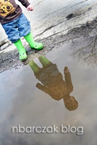 That picture where you can see Porter’s reflection in the puddle is AWESOME! I love it.