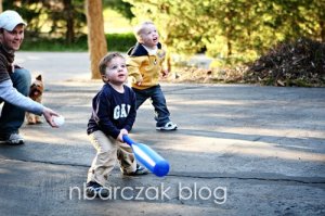 Don’t let his stance fool you… the poor kid has no idea how to play baseball. He preferred to gallop around like a horse, swinging the bat randomly and letting it fly loose.