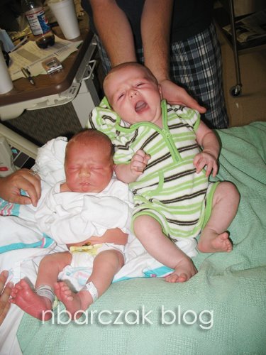 I can’t believe how much Hudson has grown in the past 7 weeks. He was even a pound smaller than Carter is (Carter weighed in at 8lbs 3oz). It makes me a bit sad to realize how quickly they grow.