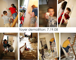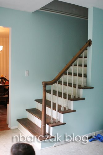 I’ll start with the foyer. I have Heather to thank for it being mostly done right now. She motivated me and helped me strip wallpaper and rip up carpet and scrap and spackle walls and pull up staples from the stairs. What an awesome friend, huh! Ryan Morrison, MyRy and LeeAnn also pitched in a bit too- so thank you guys as well!