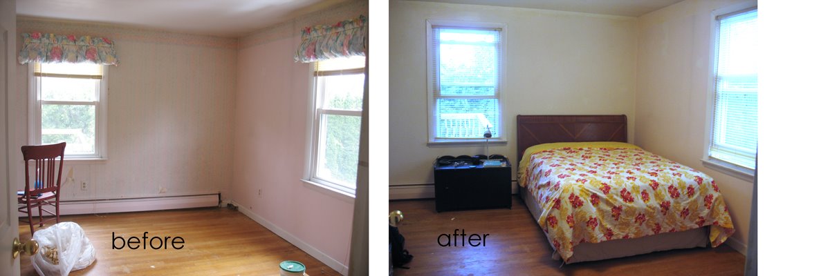 The guest room.. which is nowhere near done… but you can see the difference in having the old pastel wallpaper stripped!
