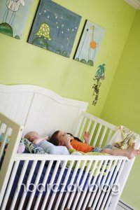 The other day I walked into Hudson’s room to find this…. I had to go grab my camera it was so darn cute. Porter had crawled into Hudson’s bed and they were just chillin out.