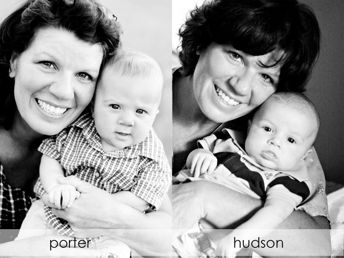 I took this picture of my mom and Hudson today. She thought he looked so much like Porter did. I have the photo of her and Porter framed in the livingroom and I thought I should put them side by side since they’re so similar. Porter is about 2 months older than Hudson though, in this picture.