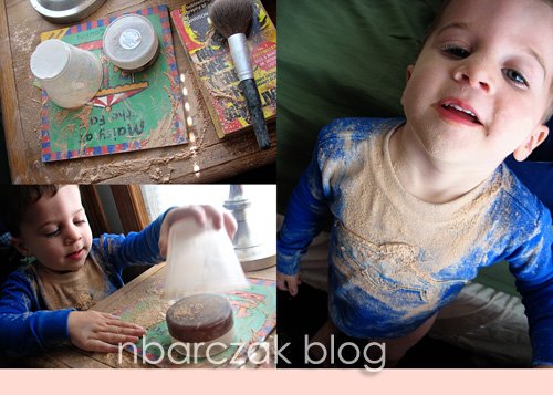 I never posted my first incident a few weeks back where Porter decided to dust my mom’s nightstand with my loose face powder. It was one of those “Gee… Porter has been quiet for awhile…” type of incidents. It was a mess and I, true photographer style, grabbed my camera without a second thought.