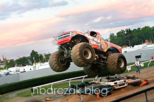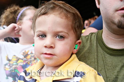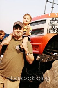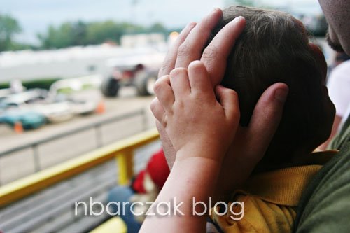 Like I said, we were really close. All I could picture was one of those big ass trucks crashing and us dying… at a freaking Monster Truck show. Not the way I pictured going out of this world. We forgot Porter’s ear-muffler things, but luckily Noah’s dad had earplugs Porter used. He was a bit scared at first, but once the trucks got going and doing their stunts, he was all into it. He even jumped up and threw his fists in the air and said “YEAH!” when two of them raced. So cute.