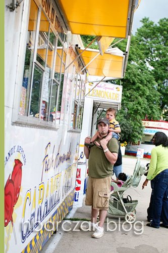 We chowed on way too much fair food (which Porter paid for the next day)… corn dogs and fries and elephant ears and cinnamon almonds and cotton candy oh and a slushee… EEEK! Way too much grease and sugar, that’s for sure!