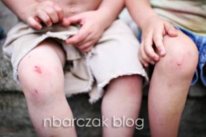 And a few boo boos of their own…. somehow we ended up with two scraped knees and a scraped up toe today.