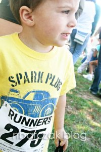 2. Wow! Have I ever mentioned you amaze me??? Oh wait…every comment I leave says that…your other readers must think I am lazy and psycho! Way to go running the race!p.s. If you would like a reminder that there are other 2.5 year old boys JUST like (maybe worse) your son, just come on over!I signed my crazy kid up for gymnastics…thinking it would be something FUN…HA!