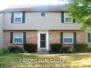 Now, seems like a simple process, right? Well… not quite. I need to look at the whole picture- we don’t plan on keeping the door green (well, actually we’ll probably replace the front door sometime in the far future, but for now paint will be an easy fix). Painting the door means painting our shutters- which we want to do because our neighbors house is very similar in style to ours and is the exact same colors (minus the brick on the front).