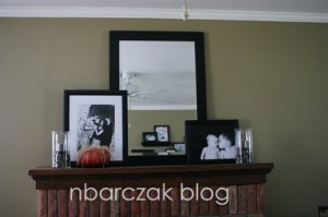but last night I had the idea of maybe putting it vertical, a little off center and add some photos stacked in to imitate the photo collages on the opposing wall.