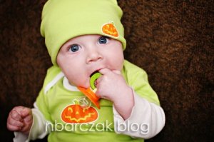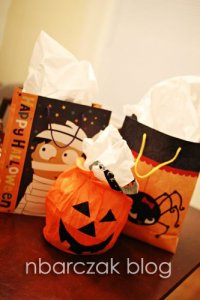 So, the boys and I picked up some Halloween goodies while grocery shopping this evening and made up 3 “Boo” bags. We dropped one off next door to the Patton’s… its Linda’s birthday today so I thought that’d be nice. And tomorrow we’re going to take the pumpkin bag to the Kelly’s behind us (they have 2 little kids) and the other bag to a random house in the neighborhood on the other side of the school. I’m wondering if it’ll bomb or if it’ll spread. I guess we’ll see. We don’t have a ton of kids on our road, but I thought that it’d still be fun regardless. Who doesn’t like to get a surprise on their doorstep?Hudson was in the Halloween spirit today… I dressed him in a little Halloween onesie/hat set and oddly we had a Nuk sucky that happened to match. ‘Tis the season! HAHA!