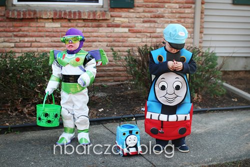 I had originally wanted the boys to match costumes… you know, a theme. I ended up not doing so matchy-matchy this year (maybe next year when they trick or treat together). However… I guess they could be Buzz Lightyear and Al from Al’s Toy Barn in Toy Story 2 HAhA!