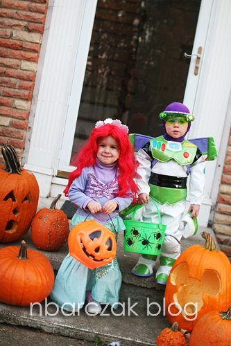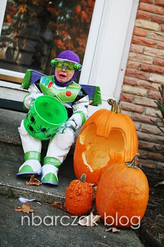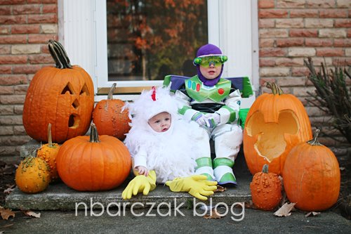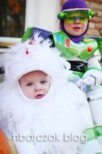 lol! that first picture is awesome! i love both the buzz and chicken costume – CUTE! all the halloween updates are so fun. you got some great shots – tucker was too excited to even sit still! π