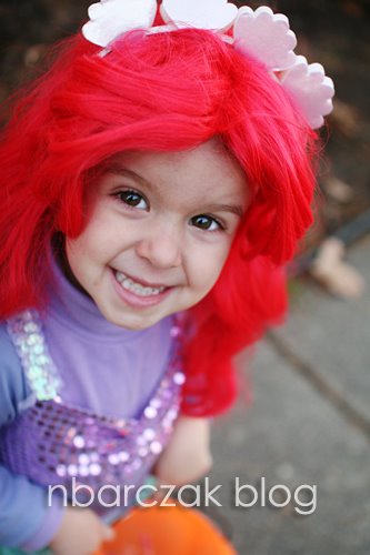 Once they left we went inside and Porter calmed down. He ended up taking his costume off because we were getting ready for dinner. Then Heather and Aubri showed up and he was in great spirits and so excited to get his costume back on and show Aubri. So we got dressed back up and went outside to take a few more photos before heading out to trick or treat. Aubri was absolutely adorable in her Ariel costume.
