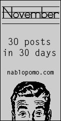 I completely forgot about nablopomo (aka National Blog Posting Month for you newbies…) until Jenny posted yesterday.