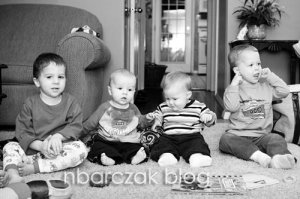 Since Porter and Donnie have pretty much grown up together since the ripe old age of 2 weeks and 8 weeks, respectively, and Hudson and Nolan are on their way to being buddies as well, I wanted to get a picture of our 4 little dudes together. It was interesting, to say the least.