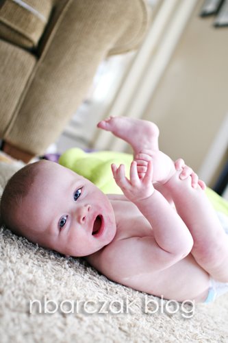 • He has a bit of separation anxiety…. he screams and whines when you leave the room. My mom was picking on him the other day and said “Well, if you’d start moving around you could follow us into the next room!” HAHA!