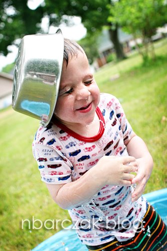 This picture is, to me, the epitome of silly. I remember this day clearly… we were living at my mom’s in between house moves…. I was trying not to succumb to postpartum blues while trying to keep my 2 year old happy and entertained. We went outside to let the dogs go to fill up the little pool so the water would be warm after naptime but Porter saw no need to wait. The icy cold, straight from the hose water was fine for him. He jumped right in, mis-matched pj’s and all, and began dumping water on his head with the dogs’ bowl. Quite silly, I’d say π But, it kept him entertained for over an hour and made me smile!