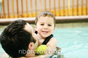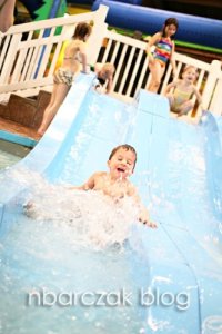 Our morning started out rough (ok, so ANY morning in the Barczak household where we’re all required to be packed, ready, organized and out the door at a specified time is deemed “rough”), but once we got to the hotel, found the RIGHT room, changed, took a couple chill pills and got to the water park, all was good. Porter was in heaven. He jumped right in and was all over the place. He loved the water slides and was so cute talking to all the “babies” in the kiddy pool (“babies” as in… walking toddlers HAHA! Not really “babies” but to him, I guess they were? He must think he’s SOOO old now that he’s 3).