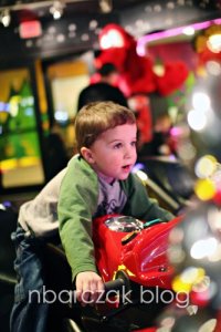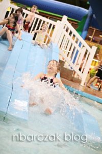 I really didn’t take all that many pictures at the waterpark. Honestly, (I am so ridiculous), but the lighting was terrible and my point and shoot sucks. Literally, the flash lights up the foremost person and the rest of the picture is pitch black. So, I did use my good camera for a few minutes in the baby pool but didn’t venture to take it anywhere else in the water park. There were buckets of water dumping here and there, kids running and splashing… I wasn’t about to chance it. It was nice to relax and not worry about capturing every moment. I did take my camera into the arcade and into the big “quiet” pool later (yes… INTO the big pool!!) but that was really all I caught of our action-filled waterpark adventures. Honestly, I took more pictures in the hotel room of the kids jumping on the beds than in the pools!