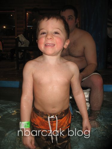 Our morning started out rough (ok, so ANY morning in the Barczak household where we’re all required to be packed, ready, organized and out the door at a specified time is deemed “rough”), but once we got to the hotel, found the RIGHT room, changed, took a couple chill pills and got to the water park, all was good. Porter was in heaven. He jumped right in and was all over the place. He loved the water slides and was so cute talking to all the “babies” in the kiddy pool (“babies” as in… walking toddlers HAHA! Not really “babies” but to him, I guess they were? He must think he’s SOOO old now that he’s 3).