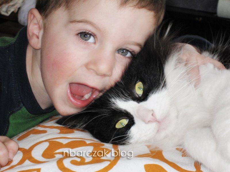 5. that is so cute how P loves his kitties!! Im happy to hear the cats are working out. Those pictures of Hudson upset is kind of cute…