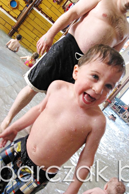 Once we checked into the hotel, which was amazing, we headed to the waterpark. Three big waterslides (Heather and I went on the big yellow one), a kids splash and play area with zero entrance, and a water sports/basketball pool for a little older kids. It also had a lazy river and two hot tubs.