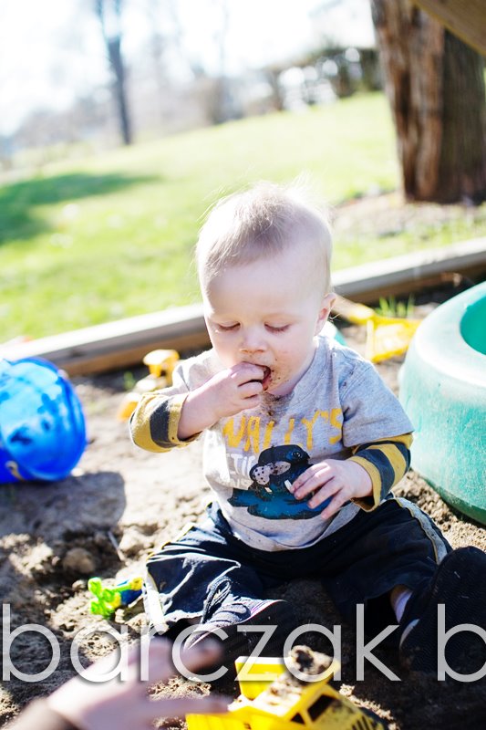 That little saying… has never been truer. My boys love to play in the dirt. Well, Porter does, and Hudson is quickly following suit. I’m glad he’s getting a little bigger and can be plopped down outside and find something to play with. We do have a sand box… just no sand yet. Even when we did last summer, Porter preferred to play in the dirt around the sand box. Go figure.