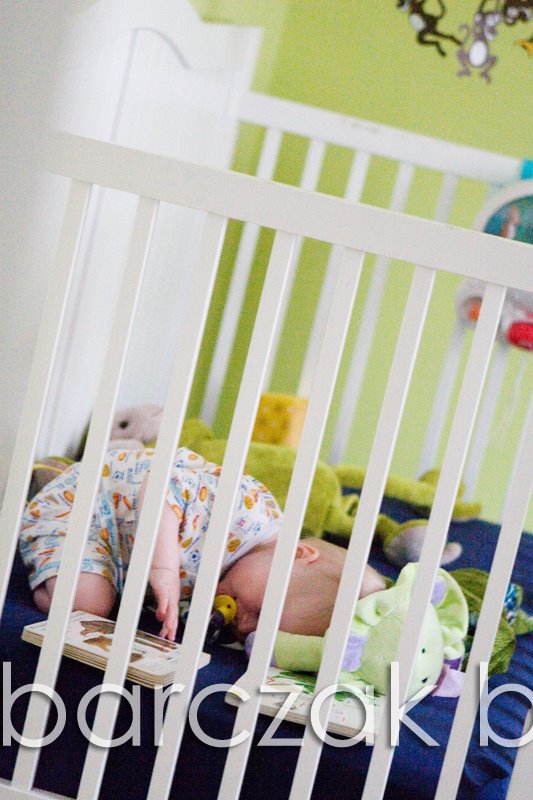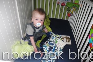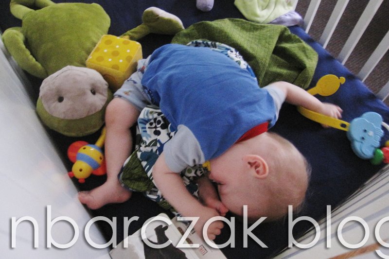 Haha! OMG Nicole, you seriously keep that many toys in his crib when he sleeps!? My kids would NEVER go to bed! Are you sure he’s not just simply exhausted from all that playing that he just passes out?! LOL!