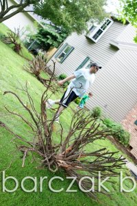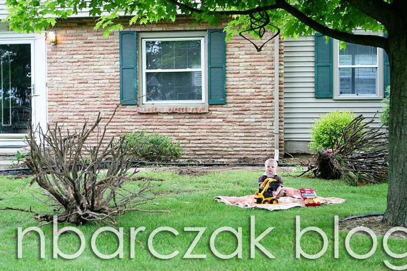 We decided to rip out the dead/ugly bushes in the front of the house. Ryan loves his truck. Porter was still sleeping after we pulled the first one out. I ran upstairs to wake him up and said “Porter! OH my gosh come look what daddy is doing to my front yard!”