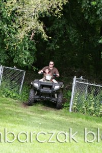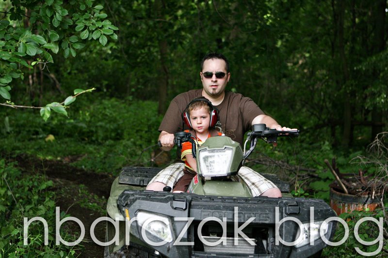 Now, before you get any misconceptions from these pictures… Dave lives in a neighborhood. A typical ranch-style-suburbia neighborhood and his yard backs up to woods. There are trails all through the woods but obviously we weren’t going to take the kids on trails. So what else to do? Drive all around the yard, that’s what! Yes… we dug up parts of his yard, made all sorts of racket and probably looked like nothing more than a bunch of crazy hillbillies. But, we all had fun. I kept thinking…. Cathy would NEVER have let this happen LOL! She’s probably rolling her eyes at us now LOL!