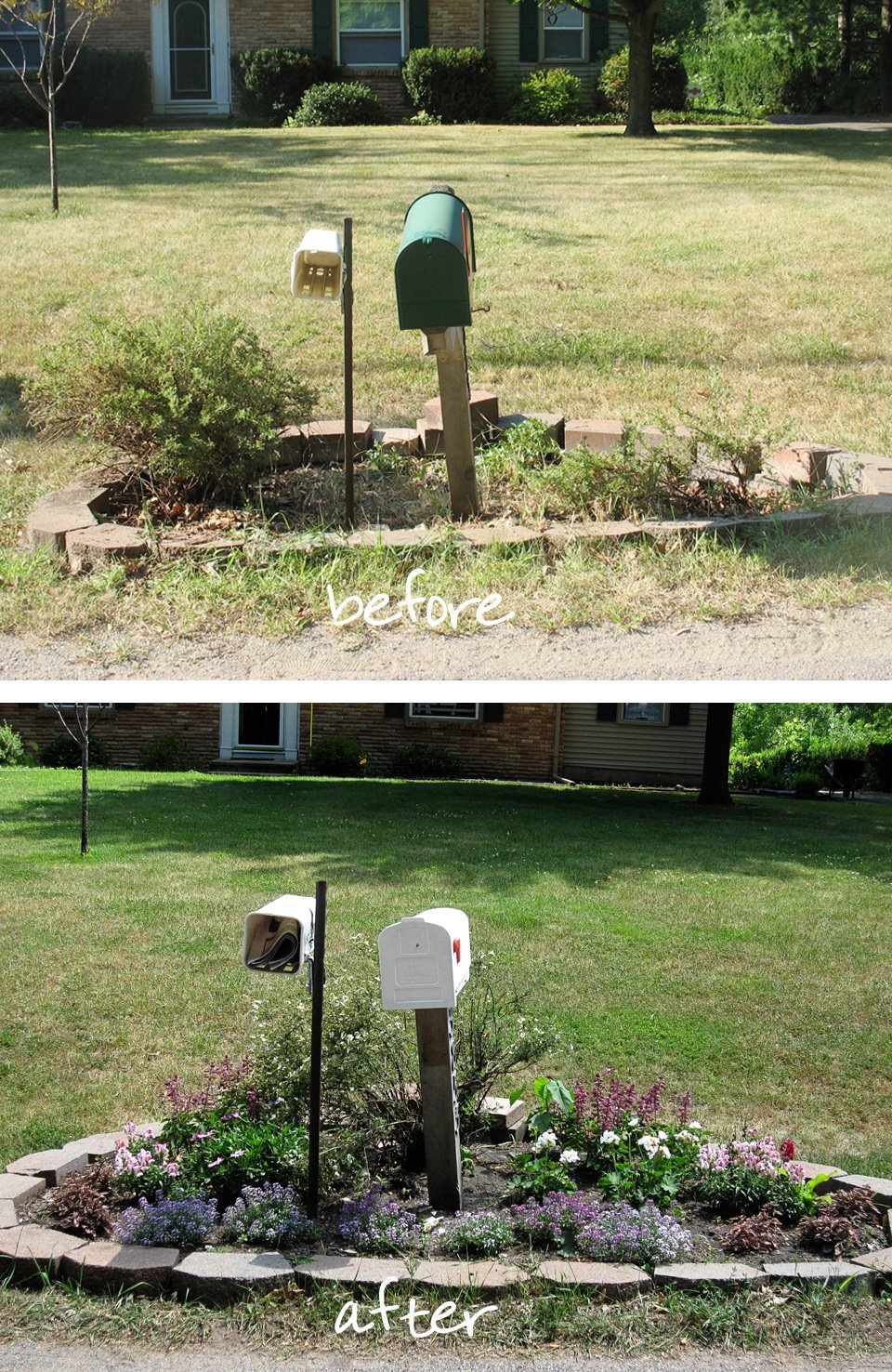 The first area is by the mailbox. I cleaned out the weeds, filled in with more dirt and moved that bush. This spring I added some annuals which i wasn’t sure of at first. They never look very good when they’re first planted. However, now that they’re growing a bit they do look nicer. I wish they’d fill out a tad more though.