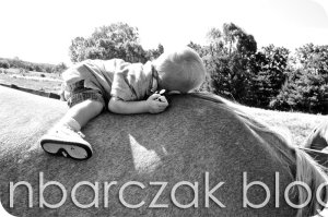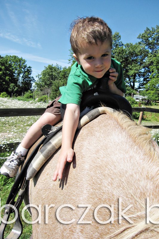 Hudson, my sweet and loving boy… I hoisted him up on Lacey and he grinned. He grinned so big and laid down on her back to hug her… grinning the whole time. I ran to get my camera (Barbie was near him), and of course when I had it, he had turned the other way.