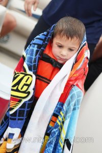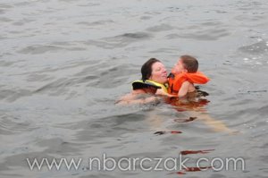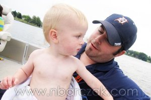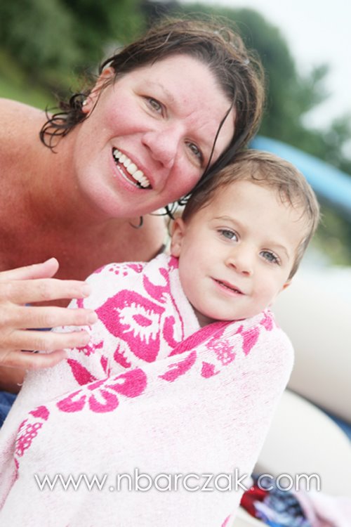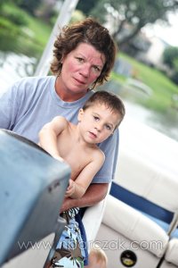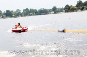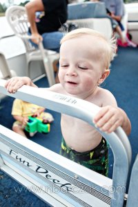 Now, they weren’t going that fast but my uncle had slowed down and then began accellerating and at the same time turning. (We’re riding in a pontoon boat). The tube started to bog down under the water and my mom felt like it was going to suck them under so she pushed Porter off and bailed with him. He of course freaked out. I freaked out. I was ready to jump in and folks, this lady does NOT swim in lakes. My mom had it under control and they made it back onto the boat. Porter had calmed down a bit by now that he realized he wasn’t drowning.