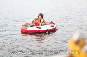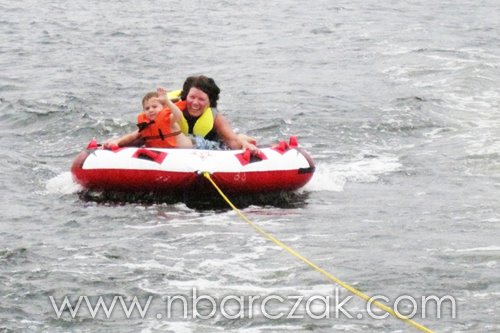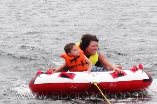 On the tube he was thrilled, my mom said. He kept telling her that they were the best tubers on the lake!