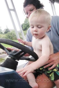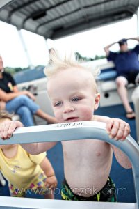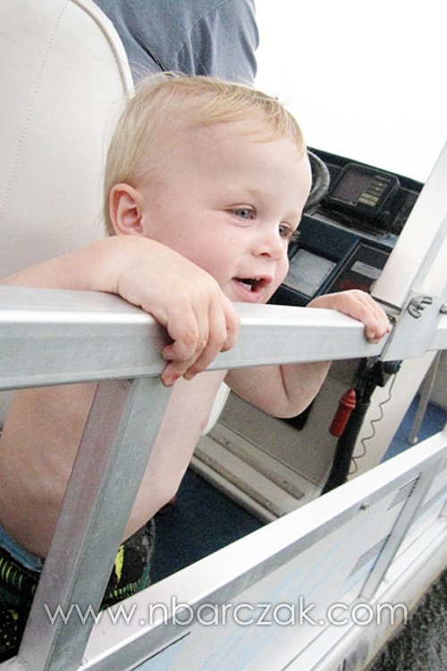 Hudson really enjoyed the boat ride. He loved the wind and the motor noise. My boys are such motor heads. He really enjoyed the horn once my mom showed him how to honk it.
