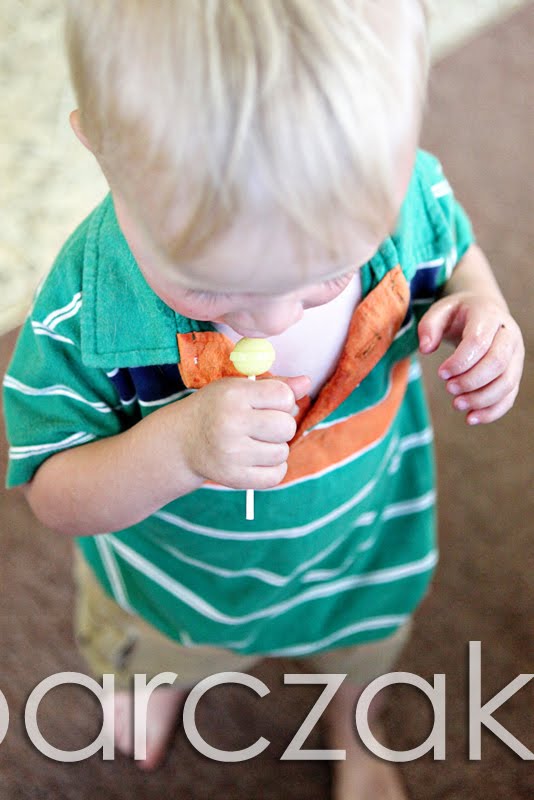 I just love his sweet blonde hair. Its so funny… before we had kids I remember thinking, well assuming, that our family would just be all dark haired. I think little blonde kids are so cute and I remember thinking once that that was something we’d never reproduce. Ryan and I are both dark haired. My mom and dad and both my siblings are dark haired. And yet, we have a blondie! Now, Ryan is adopted so who knows what hair colors are in his genes but I am thinking the blonde came from my side of the family…. My mom has a dark haired brother as well as a blonde haired brother and sister. And each of her siblings have at least one blonde and one brown haired child. My mom, of course, being the exception with 3 brown haired kids. Sometimes I feel bad that Hudson doesn’t seem to look like he belongs to our family but I do love his little blondeness!!
