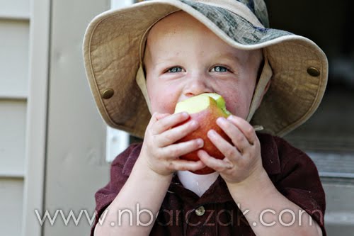 Such cute pics of Hudson.. And the dirty apple? LMAO!!