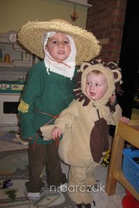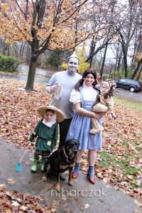 LeeAnn and her awesomeness made my costume. THANK YOU. We didn’t do any ‘fittings’ and it was a tad tight in the waist and kind of baggy up top but it is just fabulous. I love it. (and honestly, I could stand to lose a few 10 pounds or so…. and I’m sure it’d fit MUCH better LOL!) So… we went as the Wizard of Oz. Ryan was the Tin Man, I was Dorothy, Porter was the Scarecrow and Hudson the Cowardly Lion. And Ramsey…. as Toto.