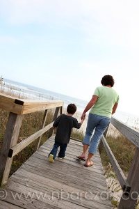 Once we got to my mom’s, we headed straight for the ocean. Porter has been to the ocean one other time (when he was about 10 weeks old), so it was really like his first time seeing the ocean. My mom has a trailer in an oceanfront trailer park. SOO nice. We hopped in the golf cart and zipped up to the beach access.