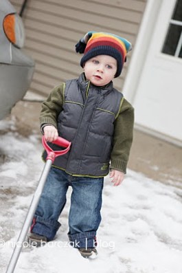 We were running errands this morning and I let the boys spend a few minutes in the snow before piling them in the van. Porter is on this “vest” kick lately… unfortunately its the dead of winter. Hopefully an extra sweatshirt layered in there keeps him warm.