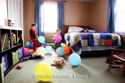 This morning I woke up to Porter yelling for me.  When I walked into his room I saw balloons all over.  My heart was so happy… Cam had still stopped for balloons.  And at 1:30 in the morning had blown them up and filled Porter’s room.  Porter was thrilled and it just made his morning.