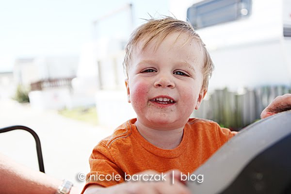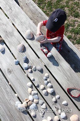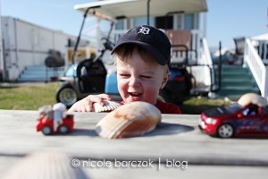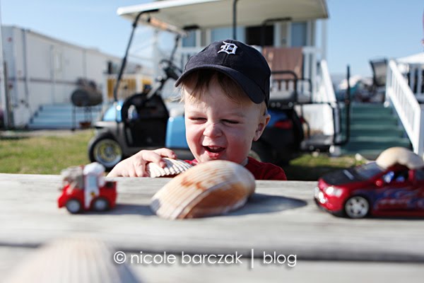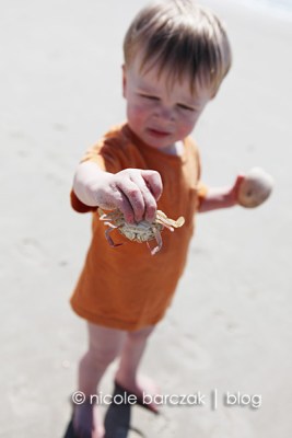 We picked up a lot of pretty shells and also found 2 dead crabs. Hudson was excited about his find and carried it back almost the entire way- until I asked him to show me the crabs claws. He immediately dropped the crab and refused to touch it after that.