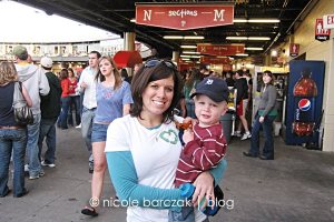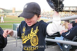 Once we got to the game we were right at 3rd base about 5 rows up. Porter was convinced he was going to catch a foul ball (we brought his mitt, too, and he kept trying to get the 3rd base coach’s attention for him to throw him a ball LOL!). We had popcorn and cotton candy and enjoyed the 3.5 innings we made it through (HAHA!). I think the boys just had a great time seeing everything going on. I know I did. And turns out tickets are super cheap (like… under $10) so we might have to make this a Daddy/Porter date outing sometime.