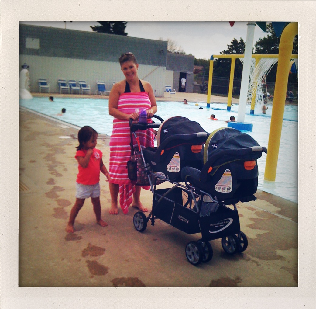Luckily, the pool was not crowded at all today. Normally, it is a madhouse and that is probably why I avoid Nixon at all costs. Sure, its a great pool and perfect for kids but I hate feeling like I can’t find my kids in the mob of other kids. Today, however, was perfect. Jane and her kiddos joined us- we decided it was a little celebration for the twin’s 3-week birthday…. a Pool Party! HAHA!