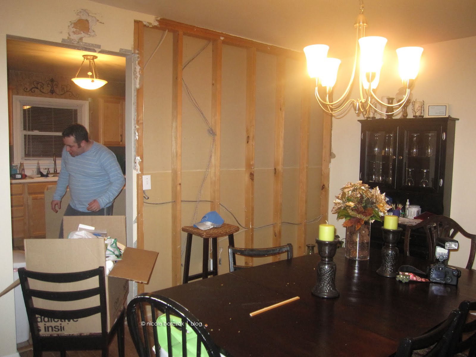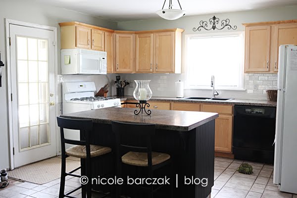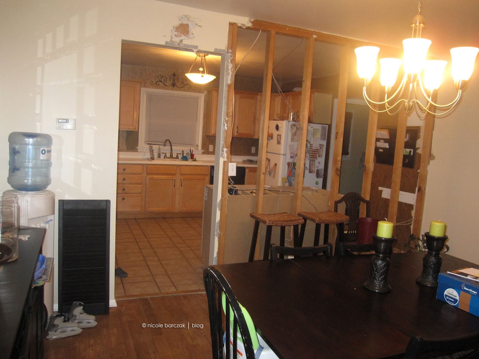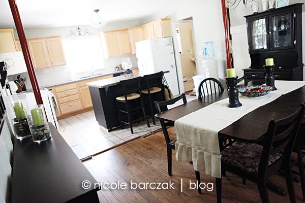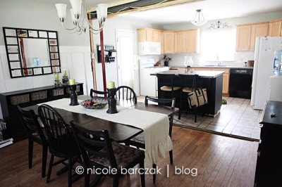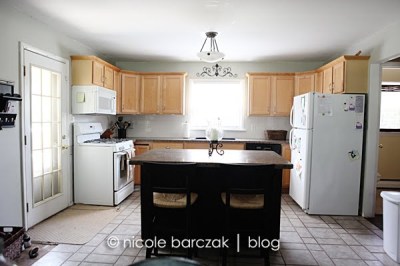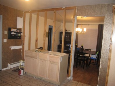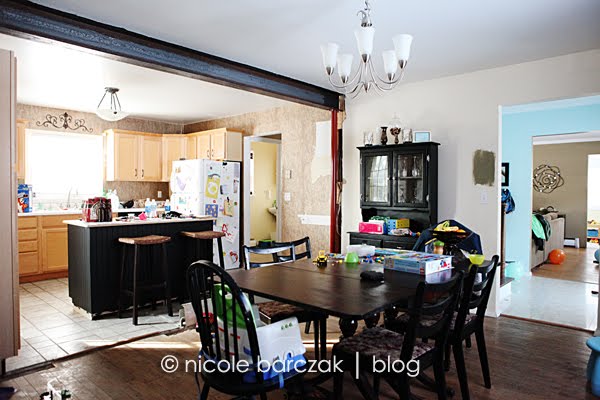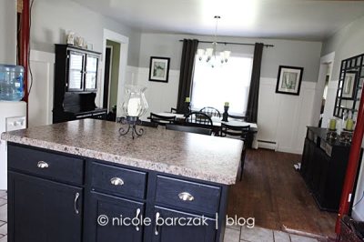 And the kitchen….. We obviously still have to get that beam framed in, drywalled and painted. (UGH). And I just purchased the slate tiles for the floor… not sure when that will get done. I also want to find a black fridge and black stove/microwave to replace the white… eventually I want stainless steel but black will be a lot cheaper for now.