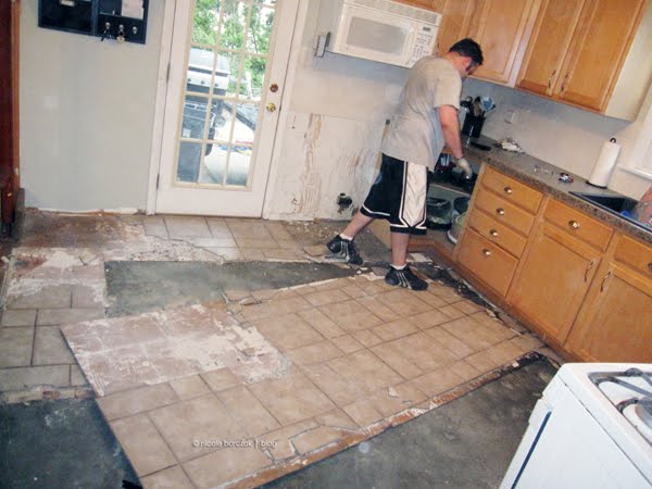 Last night Ryan came home from work and was super motivated to get started on the kitchen floor demo.  I swear, I feel like there is ALWAYS something in this house under demolition.  Ridiculous.  But, I don’t think I’d have it any other way.  I love change, and I love doing home improvements.  Its one of my favorite parts of being a homeowner.  I love personalizing my home and making it “us”.